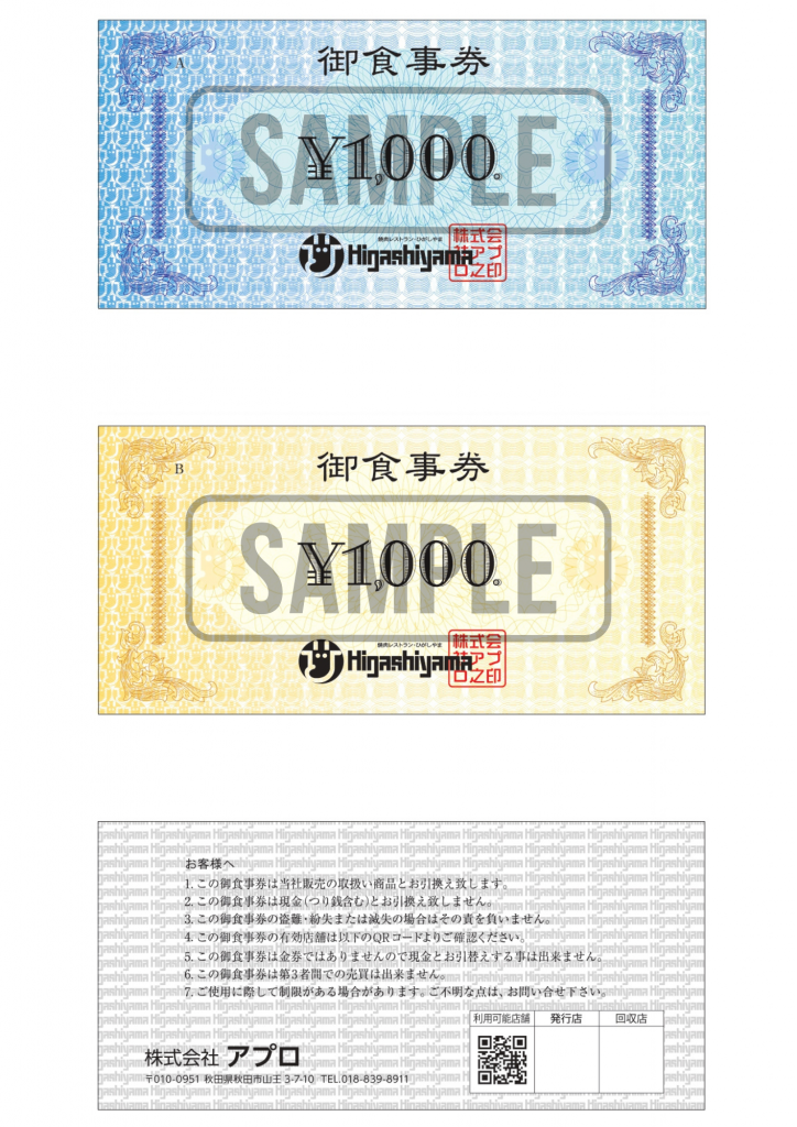 ●こちらの御食事券は「焼肉レストランひがしやま秋田東通店」のみでのご利用となります。